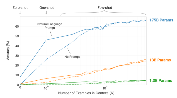 ▲提示工程使得GPT-3模型在训练样本较少时获得了更高精度(来源:OpenAI)